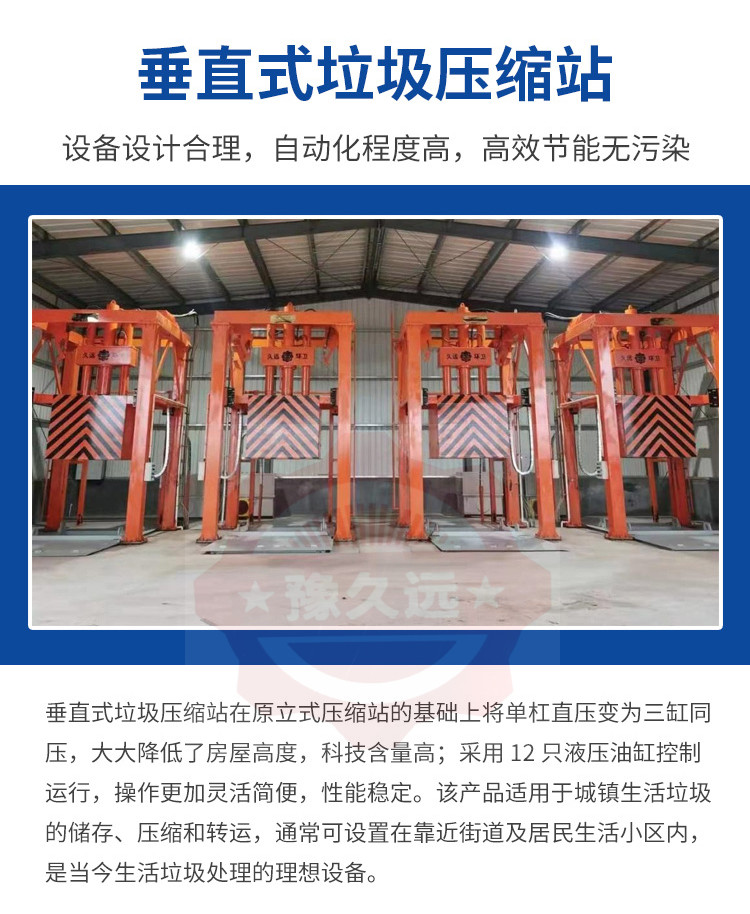 ◇采用垂直壓縮方式,壓縮力大,垃圾塊壓實密度大。