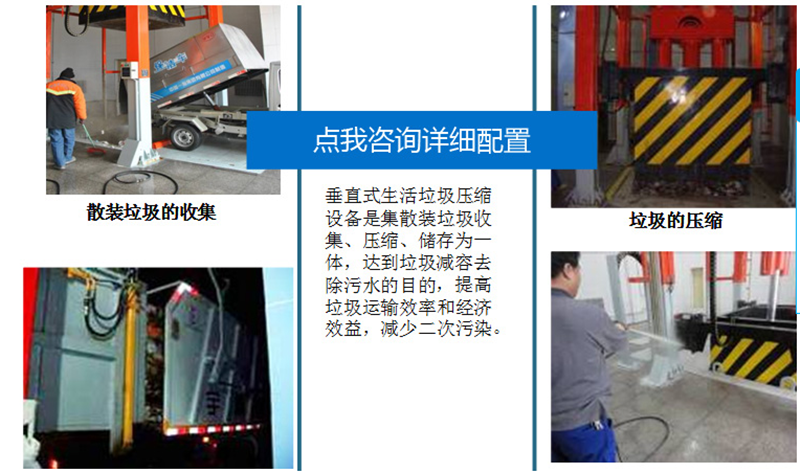 該產(chǎn)品適用于城鎮(zhèn)生活垃圾的儲(chǔ)存、壓縮和轉(zhuǎn)運(yùn),通常可設(shè)置在靠近街道及居民生活小區(qū)內(nèi),是當(dāng)今生活垃圾處理的理想設(shè)備。