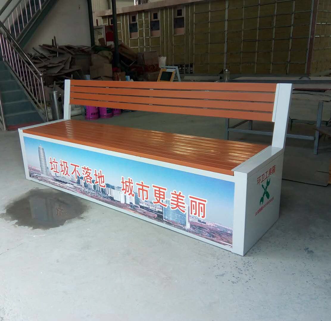 環(huán)衛(wèi)工具箱:也叫保潔員工具箱,環(huán)衛(wèi)工具椅,保潔員休息座椅,市政保潔箱等。工具箱常用尺寸為:長(zhǎng)2400*寬500*高550mm,也可以做成2米,2.4米,2.7米等,寬度和高度也可以定做,滿足不同客戶、不同場(chǎng)所的使用要求。